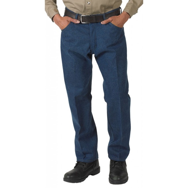 men jean pant with two big and one small front pocket, two back pockets, decorative front zipper and 5 loops on the waist belt.